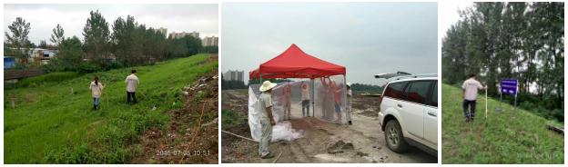 2016年7月3日,綠茵董事長(圖2)親臨江岸區(qū)朱家河堤與工人一起手把手搭建值班棚,并一起參與巡堤工作(圖3)。綠茵積極響應街道安排,一天24小時安排人手輪流守堤、巡堤、護堤。圖1為綠茵員工杵棒在堤上來回走動,查看是否出現滲水潰口,并及時向上級匯報實時情況。