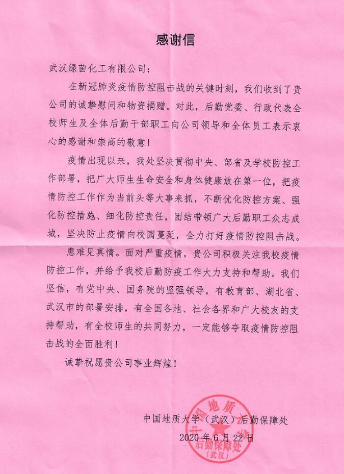 感謝信-中國地質(zhì)大學(xué)